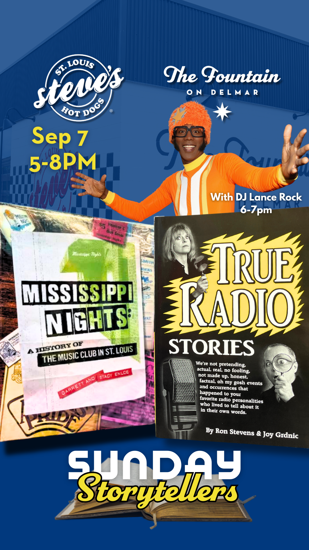 5pm-6pm: Garrett and Stacy Enloe - Mississippi Nights: Dive into the rich music history of the iconic Mississippi Nights venue with authors Garrett and Stacy Enloe. Their book, Mississippi Nights: A History of The Music Club in St. Louis, chronicles the 30-year run of the legendary music club, featuring stories and photos of legendary acts like The Police, Nirvana, and local favorites like The Urge (shoutout to Steve Ewing!) and Story of the Year. Did you know that Steve's Hot Dogs is decked out in Mississippi Nights show posters? It's the perfect backdrop for this book talk!